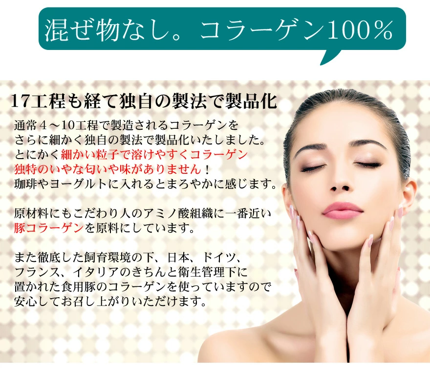 コラーゲンペプチド(豚皮) 保存料、着色料、香料などは使用していません。 |